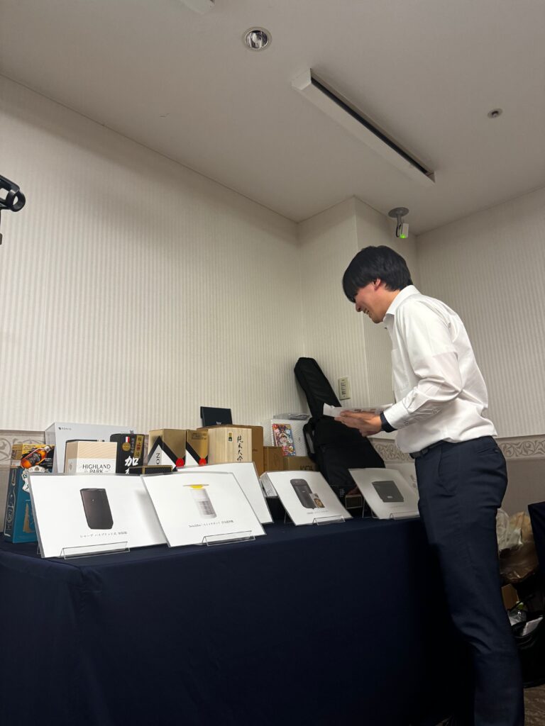 当日は、彩り豊かな料理をビュッフェスタイルで楽しみながら、社長賞の表彰や参加者同士の歓談が行われ、自然と会話が弾むひとときに。会場は終始あたたかな空気に包まれ、景品をかけたゲームタイムでは笑い声が絶えない盛り上がりを見せました。そして気になる今年の景品は……